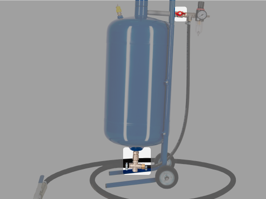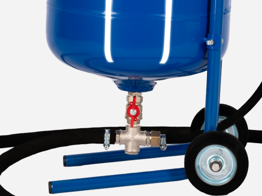 Два крана позволяют “изолировать” бак, быстро прочистить сопло и крестовину, а также мгновенно отключить источник подачи воздуха для подключения другого